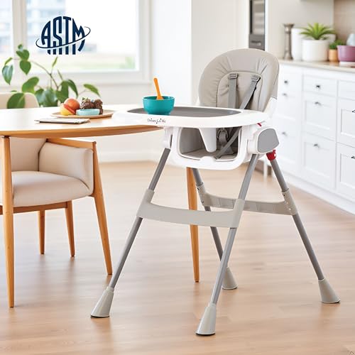 Safety is always a priority when it comes to baby products and this high chair meets all ASTM/CPSC standards. It s fitted with a 5 point safety harness and anti skid feet to keep your little one secure while they enjoy their meals. The lightweight design makes this chair easy to move around and it also folds into a self standing unit so you can store it easily when not in use.